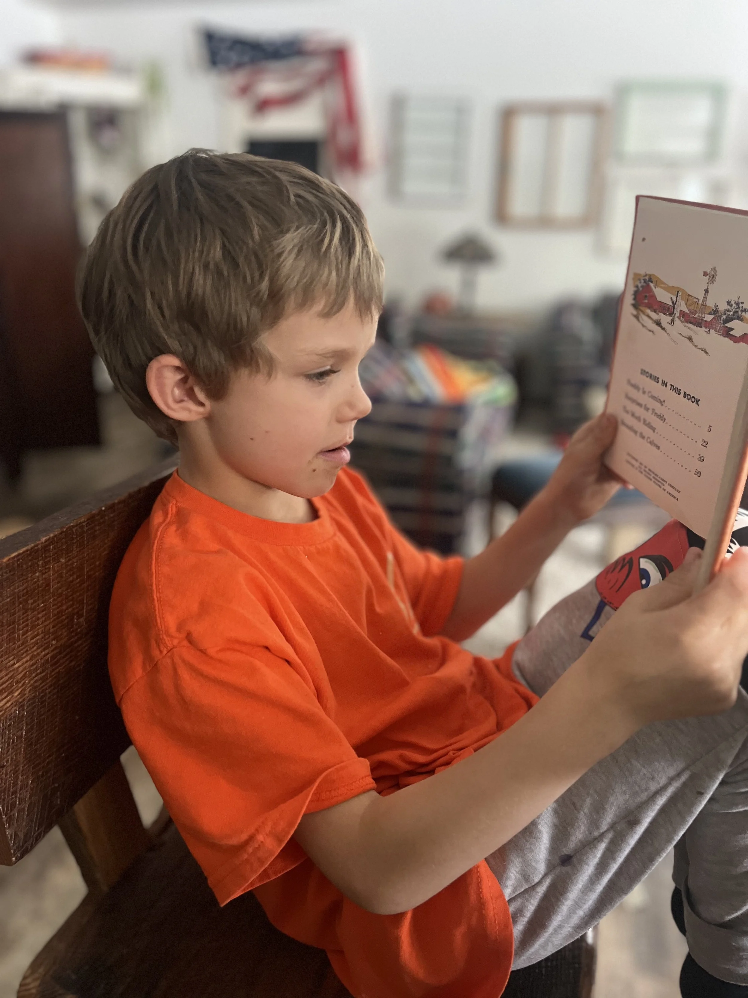 As we sit around the table, I light a candle to create a cozy atmosphere. Each boy picks out a book to share with the group, and we take turns reading aloud. This has become a valuable time for building reading confidence in my older boys. They have become more comfortable reading in front of others and have even gotten excited to share their next book of choice.