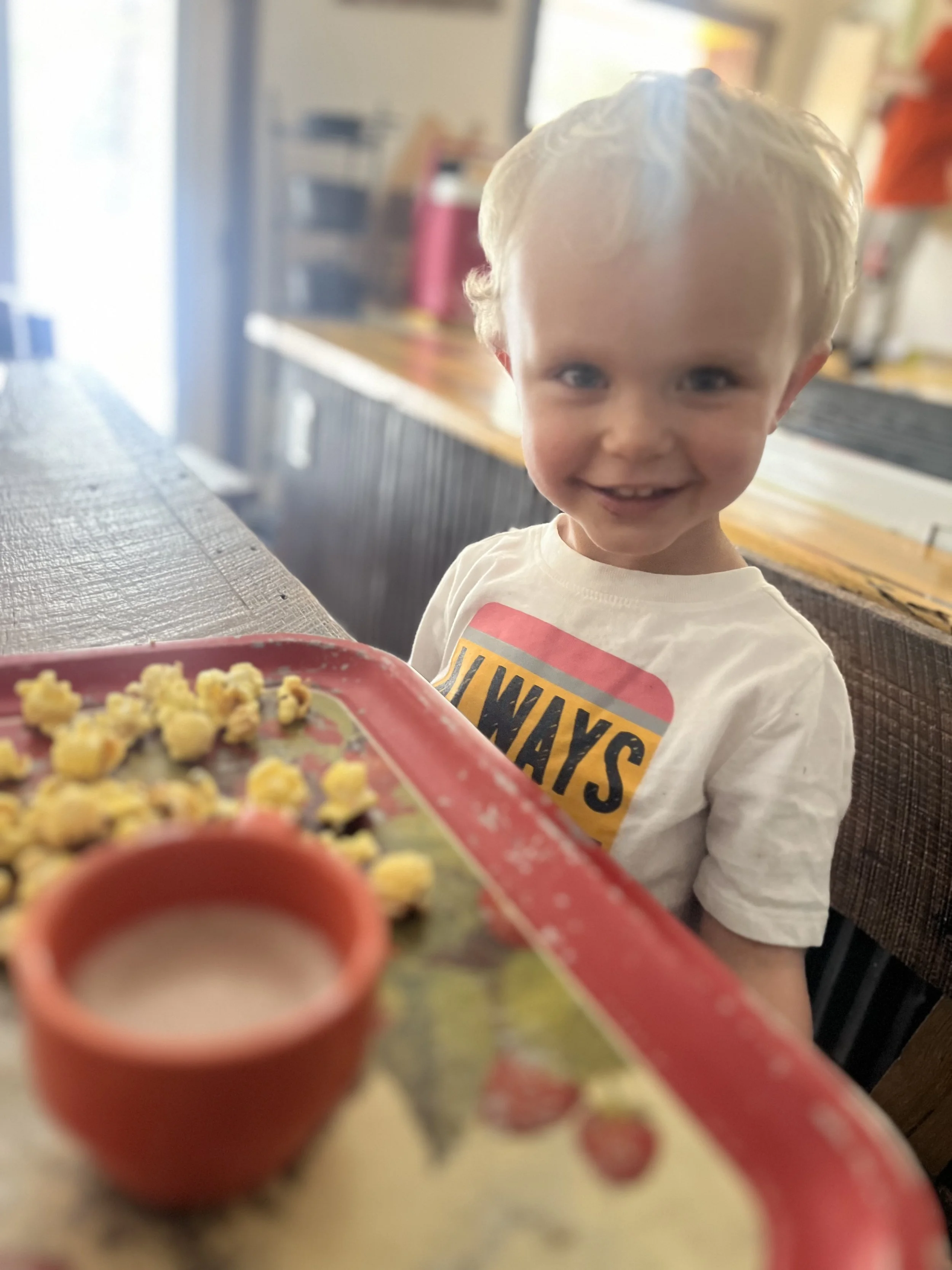 Tea Time occurs in the afternoons, when the schoolwork (or at least mostly), and our home is “reset.” I gather my boys around the table, make a special snacks, and let them choose their favorite tea. Today's snack was popcorn drizzled with chocolate and sprinkles – a #teamhazen fav.